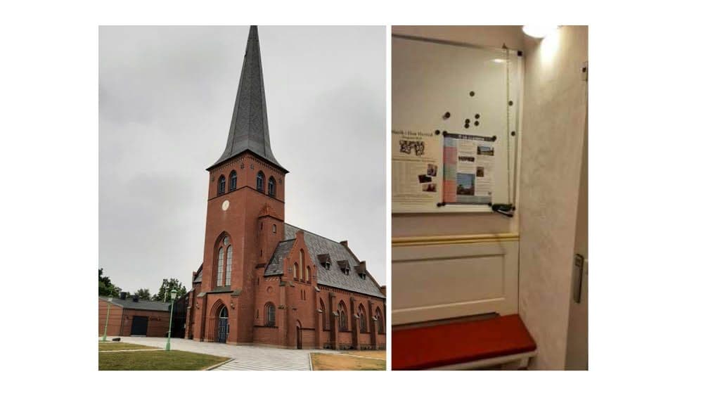 Finden Sie die Briefmarke: Die Briefmarke befindet sich im Waffenhaus bei der Kirche in Løgstør.